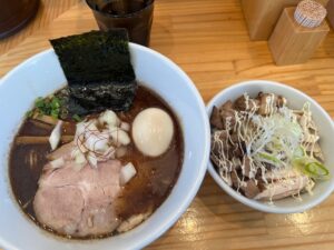 今回は「味玉濃厚魚介らぁ麺 1,050円」と「マヨ肉めし 380円」をチョイス。